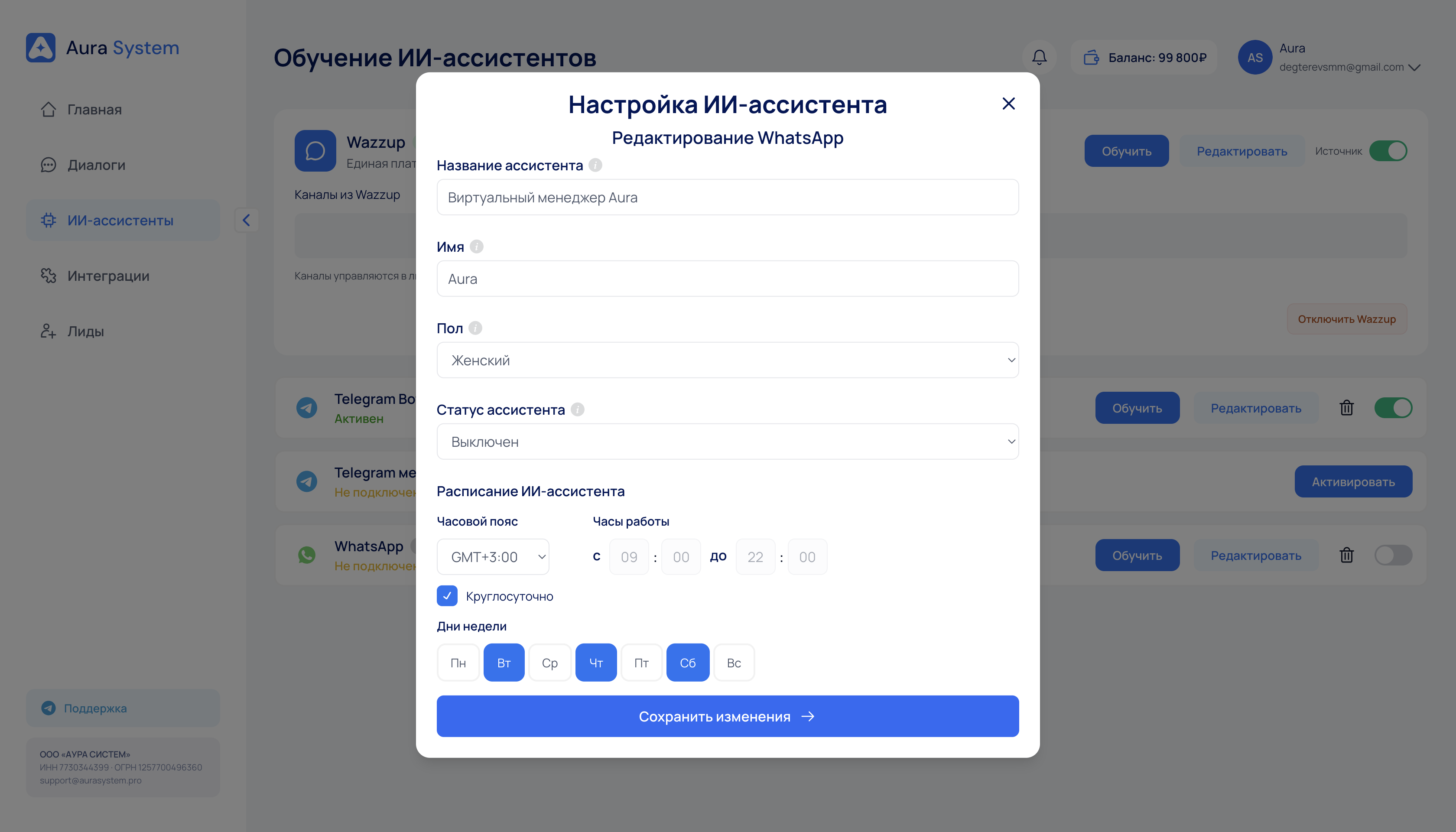Если стоит ограниченный график — ассистент не будет отвечать ночью или в выходные.